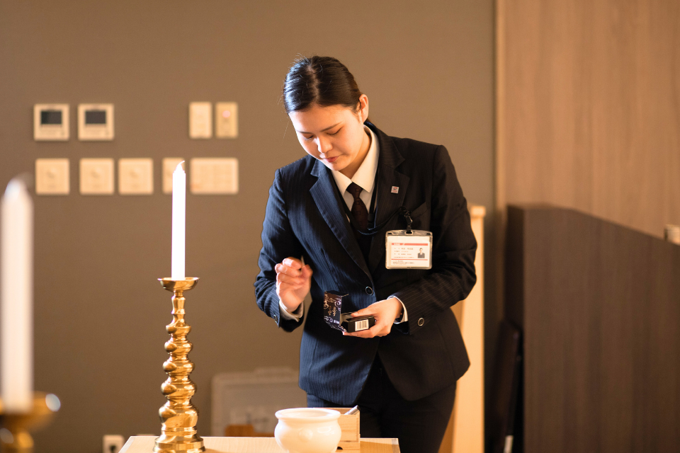 私自身とても涙もろく、施行中泣きそうになってしまうことが何度もありますがプロ意識を持ち、施行に励んでいます。感情移入や心身の疲労を心配されることもありますが、悲しみに暮れるお客様に対して何も思わなくなるほうが失礼ですし、慣れは怖いです。人とかかわる仕事だからこそ自身の気持ちや感情は大切にしています。